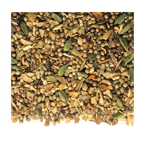 Ingredientes: raíces de jengibre, cardamomo, cilantro, raíces de cúrcuma, clavo, nuez moscada.